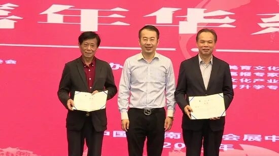 顾问专家团聘书环节:美育专家、全国高报专家、中国首席就业咨询专家、中教美育教育研究院院长、活动组织负责人邓素云现场为广西文旅厅原一级调研员赖富强、中国硬笔书法家协会副主席莫振宁、颁发顾问专家团聘书