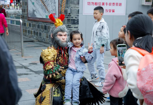 在商务部组织的中国国际消费中心城市精品消费月活动的推动下,重庆各地消费市场热闹非凡。大足石刻景区积极响应,于 11 月 9 日在著名景点洪崖洞、解放碑举办了一场令人瞩目的黑神话悟空角色快闪活动,为消费季增添了独特的文化魅力。