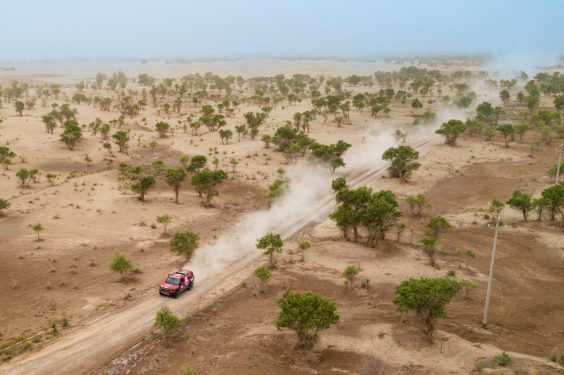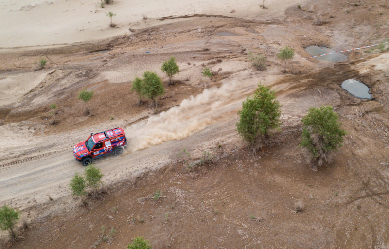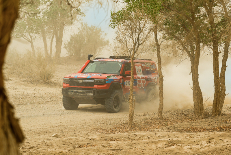 纵横G700环塔版的产品力核心,源自环塔拉力赛的极限验证。“未上市先征战,一战夺五冠”,作为2025年环塔全场唯一未上市车型,它以“青涩”面孔上场直接斩获SSS赛段-21km、SS3赛段-335km等五大赛段冠军,直接成为“中国电混穿越之王”,核心底气便是“实力不掉线、续航不打折”的硬实力。面对554km魔鬼赛段,当其他车型避之不及,该车以2.6倍真赛段距离孤身闯过,全程直面70℃地表高温、强沙暴、密集碎石堆等极端工况,以零故障运行的表现,刷新定义了赛事新标杆。