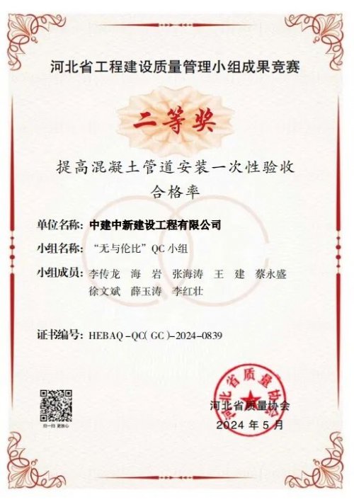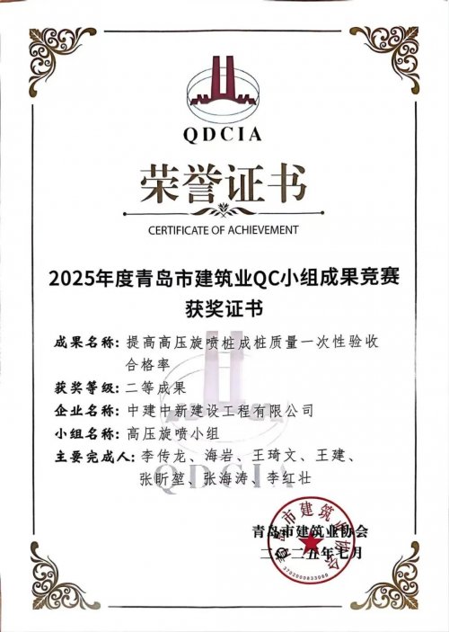 项目团队遵循“建工出品 皆要精品”的质量管理理念,打破常规使用双管法对盐碱地质软土地基进行高效高质加固,为后续施工筑牢质量“压舱石”。项目“技术攻坚小组”共计优化图纸问题百余项,创新应用“分区探查+高压旋喷桩+深层换填”相结合,攻克在富砂层、高水位、地质复杂条件下施工难题,推动项目降本增效。项目先后荣获实用新型专利1项,省级QC成果二等奖2项,发表论文1篇,市级QC成果二等奖1项,公司优秀QC成果三等奖及公司“四优化”优秀成果一等奖。
