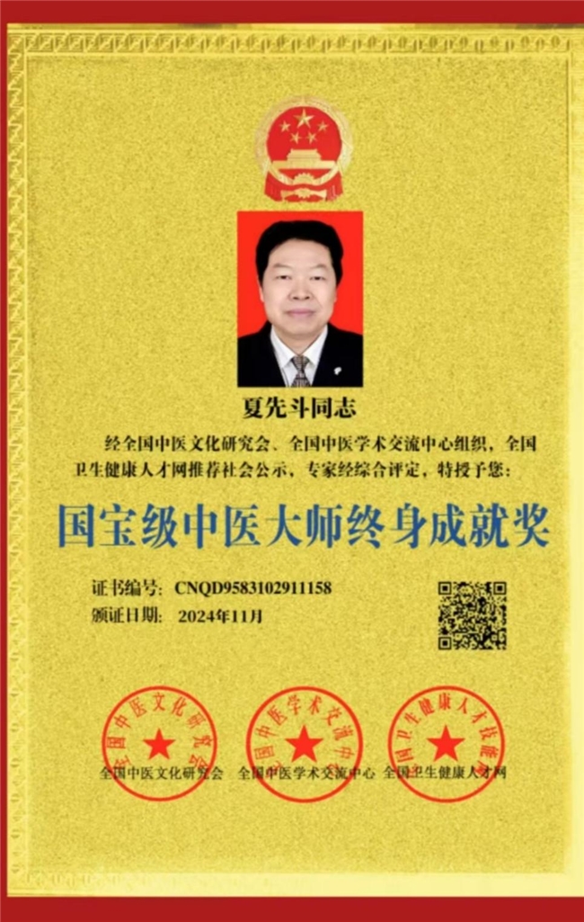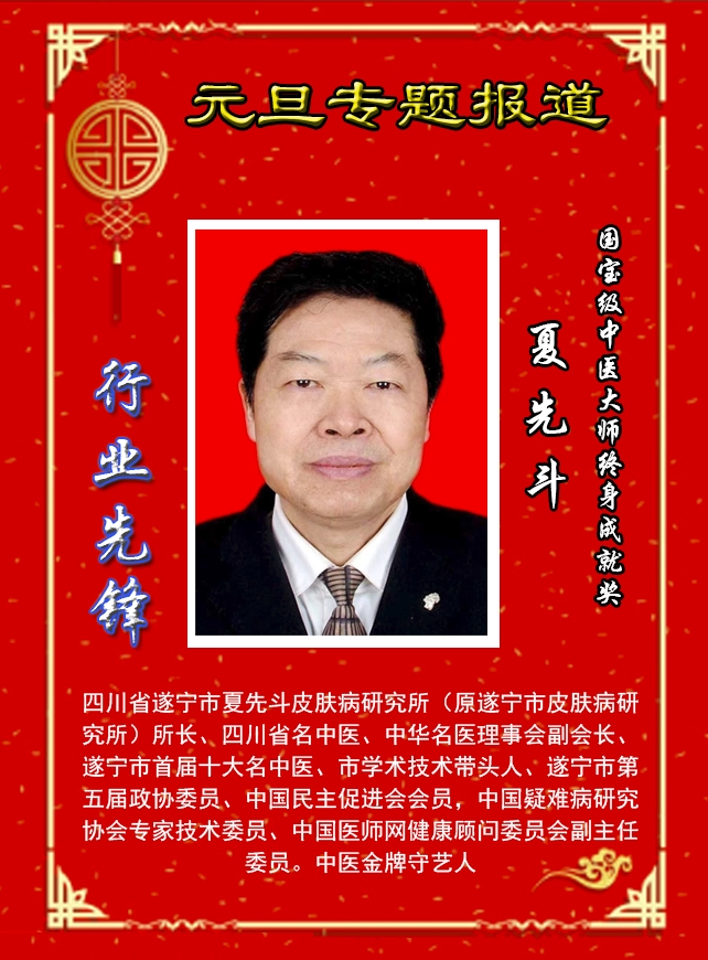 夏先斗主任中医师是四川省遂宁市夏先斗皮肤病研究所(原遂宁市皮肤病研究所)所长、四川省名中医、中华名医理事会副会长、遂宁市首届十大名中医、市学术技术带头人、遂宁市第五届政协委员、中国民主促进会会员,中国疑难病研究协会专家技术委员、中国医师网健康顾问委员会副主任委员。他热爱中医药事业,技术精湛,精益求精。求医者遍及省内外及港澳地区。门庭若市,妙手回春,深受民众青睐。2006年,四川省委省人民政府在全省评选“四川省首届十大名中医。”他被评为60名候选人之一。评委会在公告的候选人简介中写道:“行医30多年,擅治银屑病、白癜风、扁平疣、尖锐湿疣、淋病等多种皮肤疑难病症。”实际上他擅治的病症更多,如痤疮、毛囊炎、荨麻疹、皮炎、湿疹、鱼鳞病、毛囊角化症、黄褐斑、雀斑、带状疱疹、生殖器疱疹、梅毒、脱发、牛皮癣等。为众多皮肤病性病患者解除了难言之疾,深受人们敬爱。2003年抗击非典时,经遂宁市科技局推荐,他向国家抗非典指挥部和香港特区献方献策,受到好评。2005年经遂宁市中医局推荐,他向国家艾滋病防治中心献方献策,以“扶正清毒抗艾”为治,率先提出“从脾论治”防治艾滋病,受到好评。并收到四川省中医管理局献方公函。现在他又在进行一项为全人类解除疾病的生态防病法研究。既清新环境,健康身体,又防治未病。即将花草、植物按其所需“应用中医药的独特功效,建造养生植物生态文化园区”,即一个园区便是一付中药方剂。人居其中,自然防病;并可植成盆景,置于室内,卫生环境,清新空气,怡心防病。2009年4月,在上海参加了由国家卫生部、科技部,中国科技协会、上海市人民政府举办的国际健康生话方式博览会——中医“治未病高峰论坛”,并在大会上作了“中医治未病,我们在努力”的发言,受到与会代表的好评。