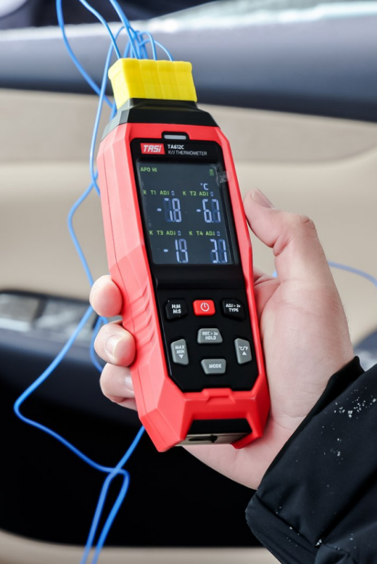 低温空调升温验证则聚焦极寒环境下的驾乘舒适性。首先将红旗天工08在室外环境中浸车10小时,确保SOC≥50%并启动空调快速升温模式,通过提前安装的专业温度监控设备监控检验,全程严格遵循GB/T 12782-2022《汽车采暖性能要求及试验方法》等多项国家标准。
