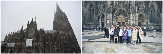 1月28日,支队抵达科隆。当科隆大教堂的双塔映入眼帘,同学们无不被其庄严所震撼。这座建造耗时超过六百年的哥特式建筑,在二战中虽被击中14次却奇迹般屹立不倒,成为文明韧性的象征。登上533级台阶俯瞰莱茵河,同学们感受到的不仅是建筑的高度,更是时间与信仰共同铸造的精神厚度。