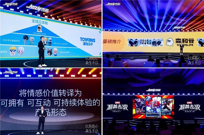 作为IP经济领域的标杆企业,杰森娱乐发布集团品牌全新形象,正式推出全新子品牌森和谷GoodsLife、潮玩分子ToyFans和想象部件Fantasy Kit,分别是用五感渗透二次元生活方式的软周品牌、以视觉、创意、好玩三重驱动的潮玩品牌、以科技赋能IP体验的3C品牌,与原有子品牌共同构建IP全品类生态的品牌矩阵;现场宣布漫威全球合作项目正式落地,漫威对战卡牌《超英击战》将推出中文、英文、印尼文等多语言版本,并携手迪士尼、《凹凸世界》、小芒等各大战略合作伙伴及全体经销商,持续共建IP全品类生态。