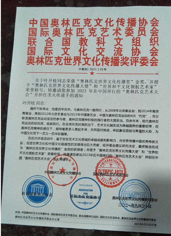 标题:中国国家艺术形象代表人物——叶开枝