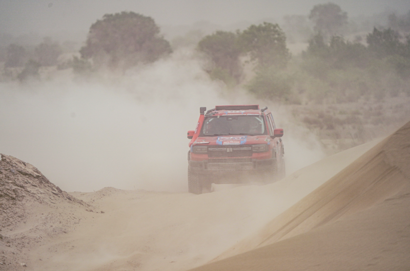 纵横G700环塔版的产品力核心,源自环塔拉力赛的极限验证。“未上市先征战,一战夺五冠”,作为2025年环塔全场唯一未上市车型,它以“青涩”面孔上场直接斩获SSS赛段-21km、SS3赛段-335km等五大赛段冠军,直接成为“中国电混穿越之王”,核心底气便是“实力不掉线、续航不打折”的硬实力。面对554km魔鬼赛段,当其他车型避之不及,该车以2.6倍真赛段距离孤身闯过,全程直面70℃地表高温、强沙暴、密集碎石堆等极端工况,以零故障运行的表现,刷新定义了赛事新标杆。
