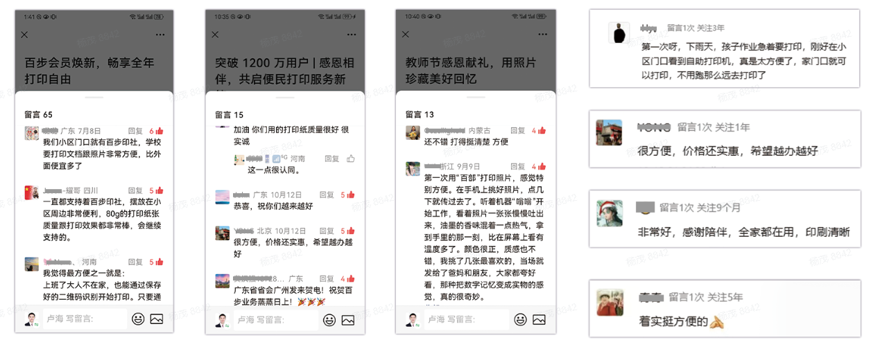 目前,全国已布局超 15000 台自助打印终端,服务 C 端付费用户约 1400 万,稳居户外便民自助打印赛道规模前列。依托全国点位网络、集中供应链、24 小时运营体系及系统化运维与热力地图专业调度,百步印社持续提升运营效率,将规模优势有效转化为可持续的服务能力与发展动能。